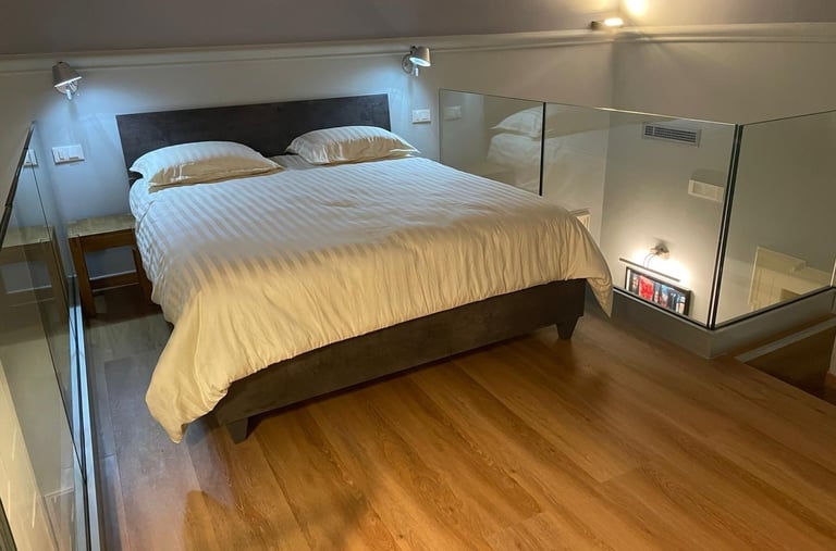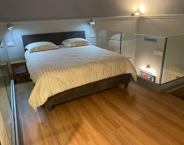 Camera moderna ideata su due livelli, perfetta per famiglie che cercano un ambiente spazioso e confortevole. Questo tipo di camera offre una disposizione unica che permette di separare gli spazi tra relax e lavoro grazie ad un comodo soppalco.