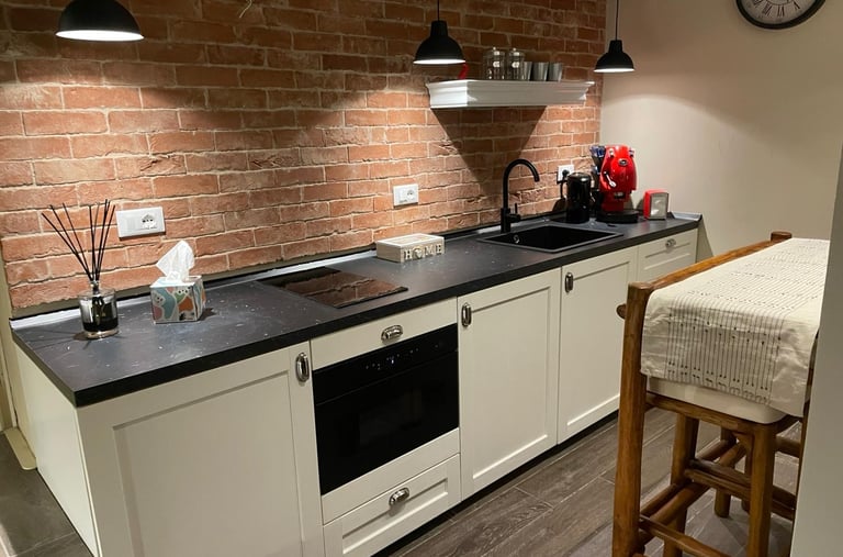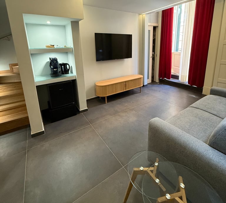 Dallo stile metropolitano con cucina moderna. Questa fusione di estetica contemporanea e praticità offre un'esperienza senza pari. E' stato progettato un divano letto di alta qualità per consentire spazio di giorno e relax di sera.